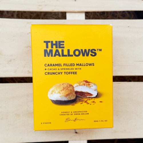 Karamell gefüllte Marshmallows mit Kakao und bestreut mit knusprigem Toffee | Mit flüssigem Karamell gefüllte Marshmallows, bestreut mit knackigen Karamell-Flocken. Eine köstliche Kombination aus zartem Schmelz, crunchiger Textur und intensivem Karamellgeschmack.